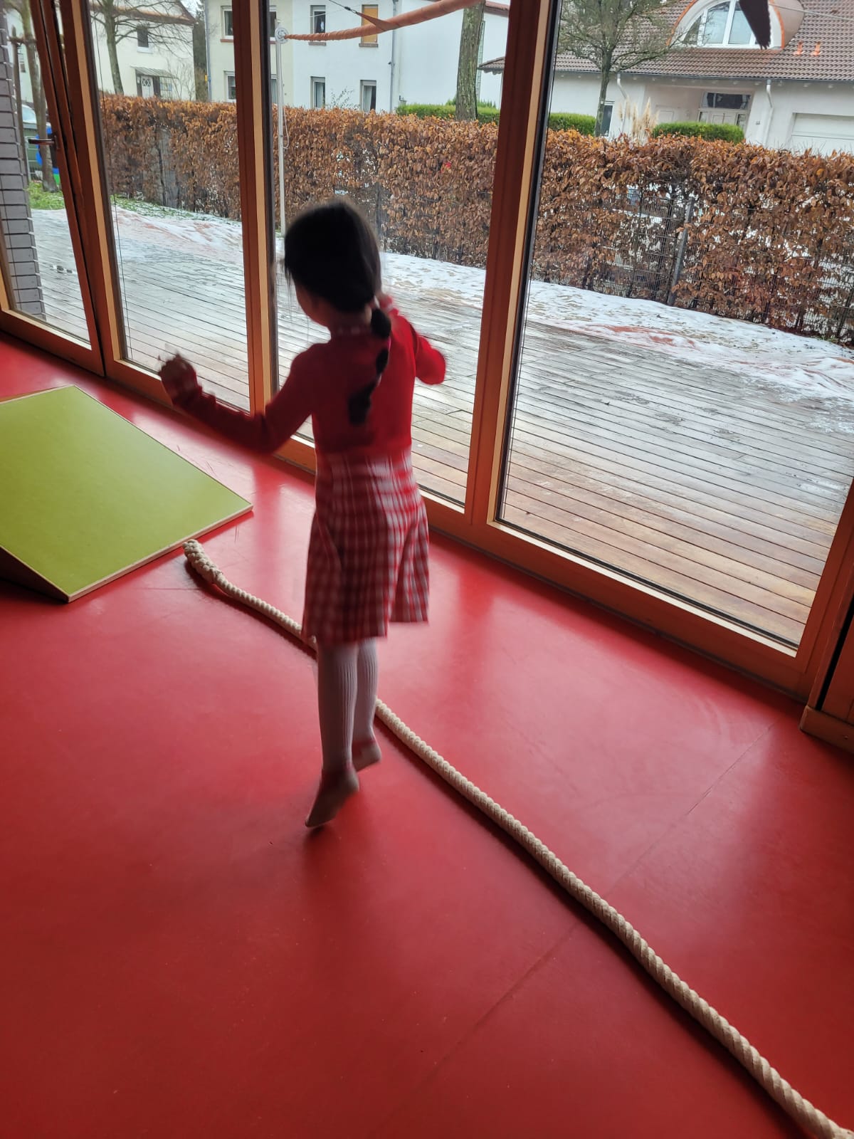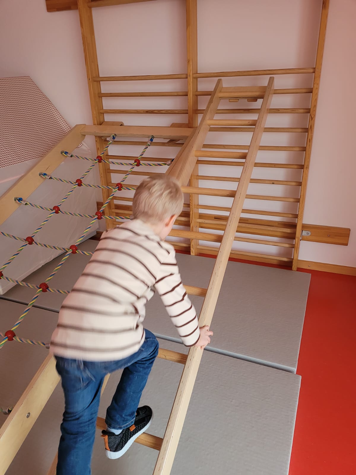 Bewegung ist für die gesunde Entwicklung der Kinder besonders wichtig. Deshalb bieten wir regelmäßig angeleitetes Turnen an. Dabei können die Kinder spielerisch ihre motorischen Fähigkeiten, ihre Körperwahrnehmung und ihr Selbstvertrauen stärken – mit viel Freude an Bewegung.